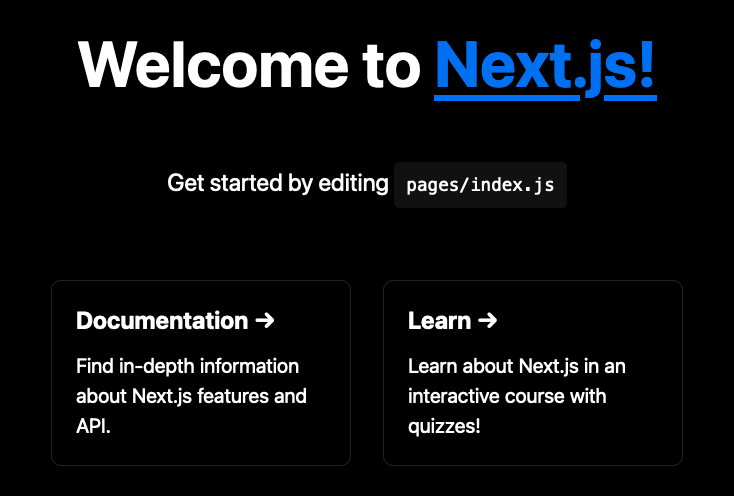 The homepage of the new Next.js application looks like the following: